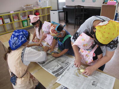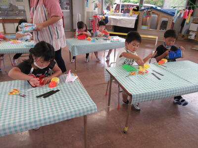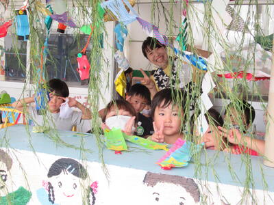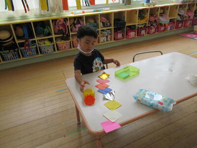 ひよこ組さん、うめ組さんは、七夕飾りの作製をしました。