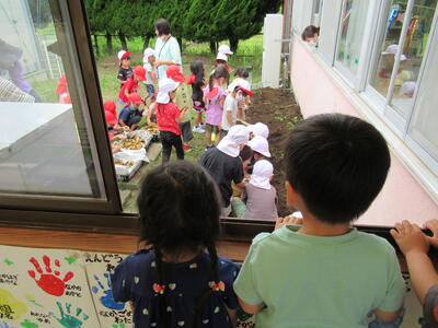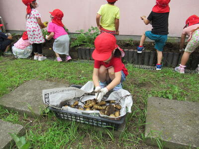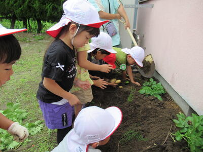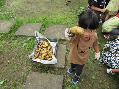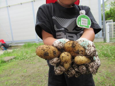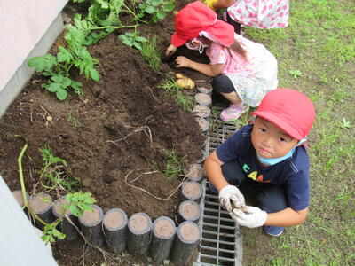 わかば組さんとうめ組さんで、じゃがいも掘りをしました。
