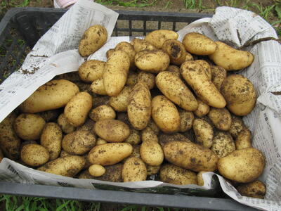 たくさん採れました。今日収穫したじやがいもを使って、9日にカレーパーティをします。