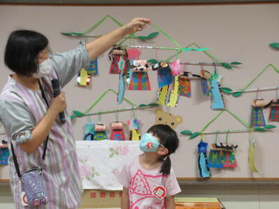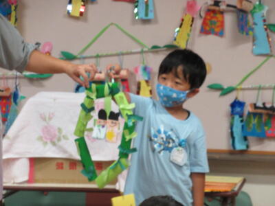 それぞれの代表から、わかば組、うめ組、ひよこ組で作製した七夕飾りを紹介ました。