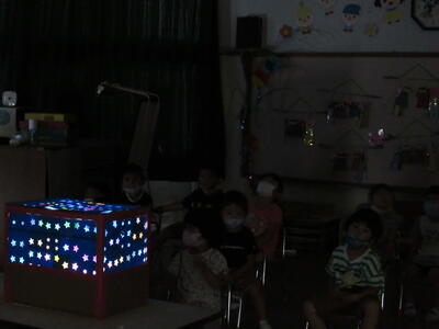 最後に、ひよこ・うめ組担任の手作りのプラネタリウムを観ました。美しい星空に子ども達は大興奮でした。