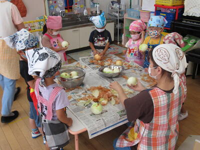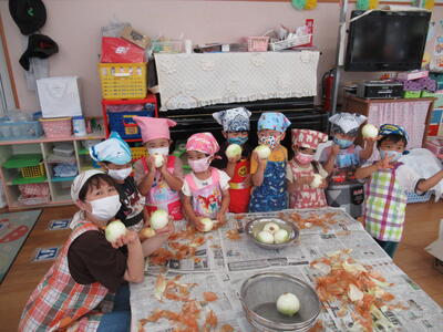 ひよこ組さん、たまねぎの皮むきを手伝ってくれました。