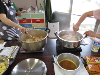 明日は、わかば組さん、うめ組さんの子ども達も調理に参加してのカレーパーティです。