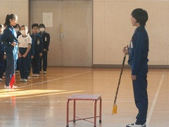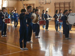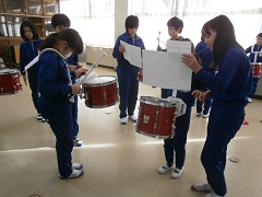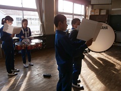 2015年1月30日 12時17分 昨日、4~6年生で、運動会で披露する鼓笛の引き継ぎを行いました。6年生が最後の演奏をし、その後各パートごとに分かれて顔合わせを行い、6年生が5年生に楽器演奏の仕方やフラッグの動かし方について教えました。2月中に何回か練習を重ねて、「6年生を送る会」や来年度の運動会で披露することになります。4年生は、鍵盤ハーモニカの練習をしていきます。