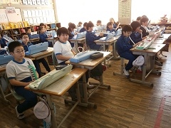 昨日、4~6年生で、運動会で披露する鼓笛の引き継ぎを行いました。6年生が最後の演奏をし、その後各パートごとに分かれて顔合わせを行い、6年生が5年生に楽器演奏の仕方やフラッグの動かし方について教えました。2月中に何回か練習を重ねて、「6年生を送る会」や来年度の運動会で披露することになります。4年生は、鍵盤ハーモニカの練習をしていきます。