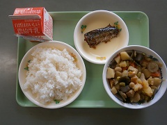 ごはん、牛乳、さんまのかつおぶしに、ごもくまめ です。