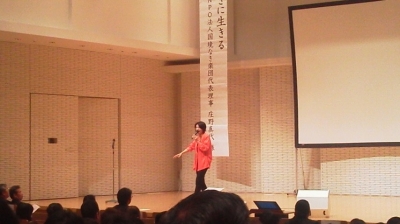 2014年1月20日 10時57分 1月18日(土)に、いわき市文化センターにおいて本年度の「いわき市PTA研究大会」が開催されました。大会テーマが「新しい風を いわきのPTAから」~明るい未来に向けた家庭、学校、地域の連携~ということで、主に市内小中学校のPTA役員等の方々が集まって講演を聴いたり、研修を行ったりしました。講演では、歌手でNPO法人国境なき楽団代表理事の庄野真代さんが「今をすてきに生きる」というテーマで話をされました。