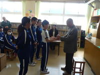 田子さんは平成9年から、毎年子どもたちへ本の寄贈をいただいております。今年で22回目になりました。この日は、子どもたちから御礼の言葉とプレゼントを贈りました。