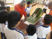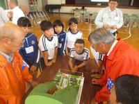 後半は、砂防ボランティアのみなさんから、模型を使って、地滑り、土砂崩れ、砂防ダムについて教えていただきました。