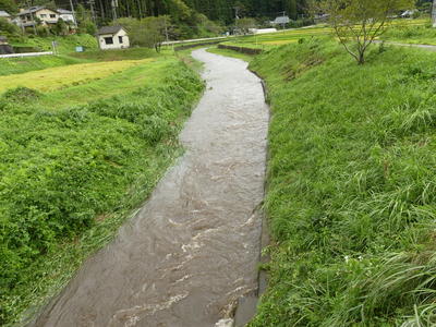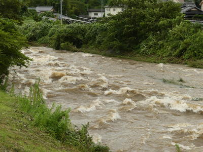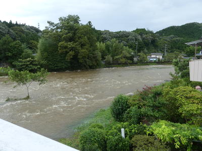 しかし、四時川は、ダムの放水が続き、かなり増水しています。