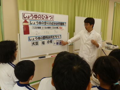 毎日、何気なく口にしているしょうゆが、たくさんのおいしくなる工夫でできていることを知った2・3年生。続きは、国語科の「すがたをかえる大豆」の学習でさらに深まっていくことと思います。