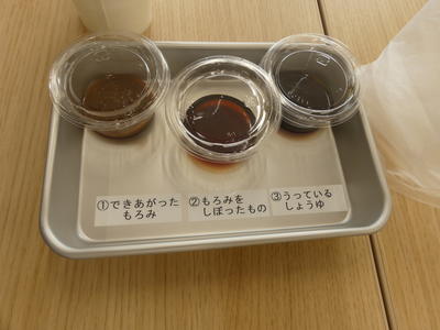 後半は、「もろみ」と「絞りたてしょうゆ」と「完成したしょうゆ」の味比べです。