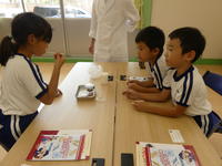 子どもたちは小さいスプーンですくって、一つずつ味を確かめましたが、それぞれ独自のおいしさがあり、好みが分かれました。