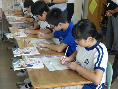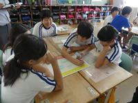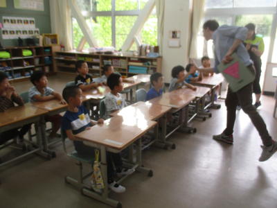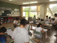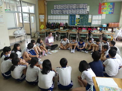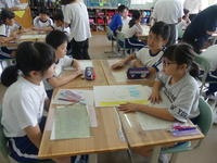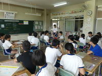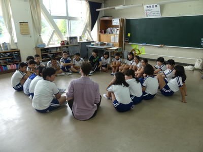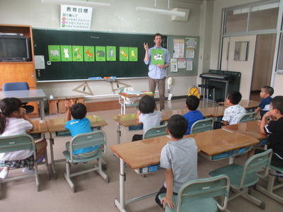 3・4・5・6年生は毎月約3回、1・2年生は月1回のペースで、英語と親しむ活動を行っています。ダフィー先生のリードで、子どもたちは楽しみながら英語の世界に浸っています。外国語活動でダフィー先生がいらっしゃる時間は、各教室から子どもたちの歓声が上がっています。