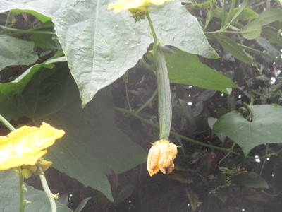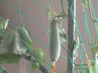 今年は、7月の天候不順がたたったのか、ヘチマの実が1,2本しかなりませんでした。それも細いままで育ちませんでした。咲くのは雄花(おばな)ばかりで、雌花(めばな)はつぼみができても落ちてしまっていたのです。