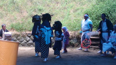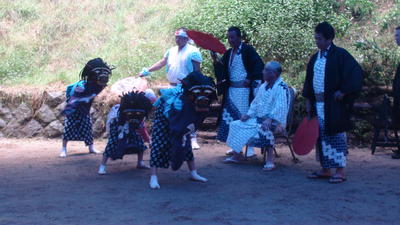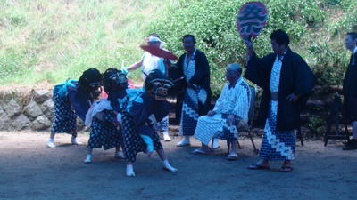 この日、1年生2人は、鹿とひょっとこに分かれて踊りました。