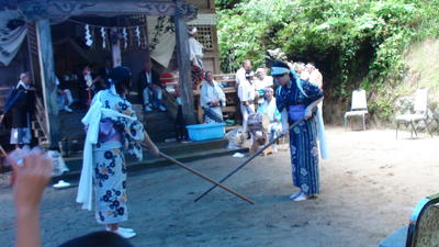 若連・青年会の方に混じって女性の棒術の奉納もあり、