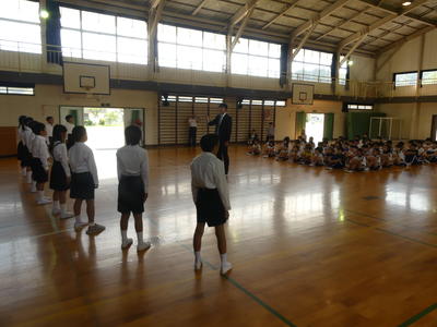 9月17日(火)、4年生が合唱を披露するとともに、1・2・3・5・6・年生が4年生を激励する会を行いました。