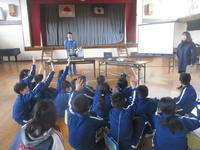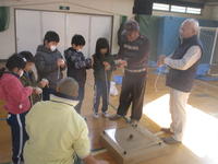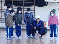1月29日(火)、1,2年生は、地域のお年寄りをゲストティーチャーにお招きして「むかしあそび教室」を行いました。この日は、川部公民館長さんと植田公民館の方(2人ともコマ名人!!)もおいでになり、妙技も見せていただきました。