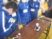 この日は、常磐共同火力の皆さんから、発電のしくみについて教えていただいたあと、いろいろな方法で電気を起こし、光や音、熱(冷却素子-ペルティエ素子もありました)、運動にかえる体験をしました。