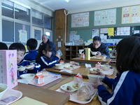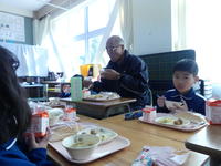 給食は、今日のゲストティーチャーの皆さんといっしょに楽しく食べました。いつもより食欲もりもりの1・2年生でした。
