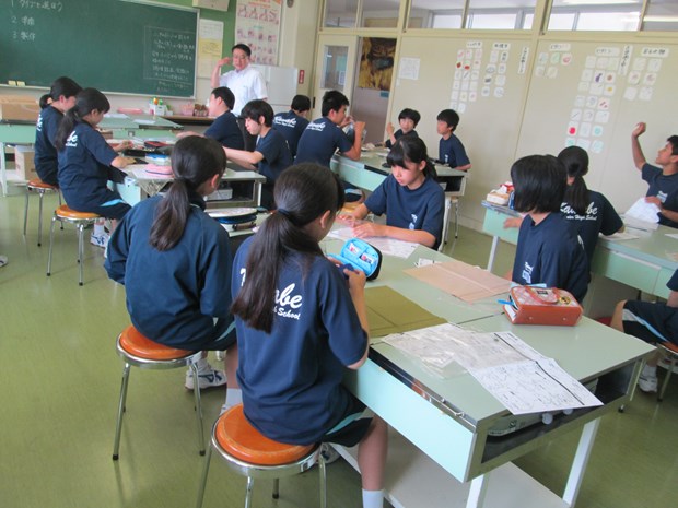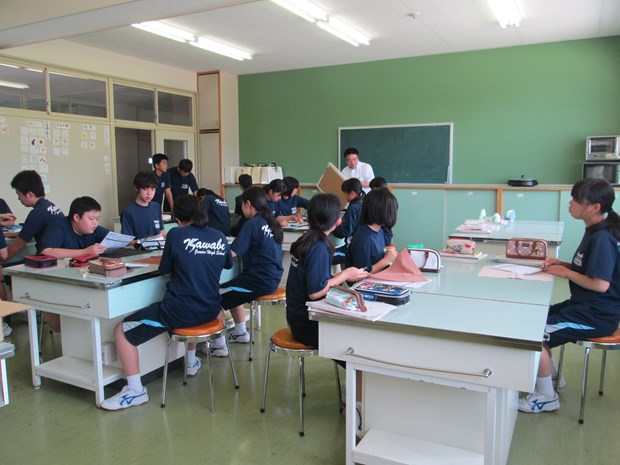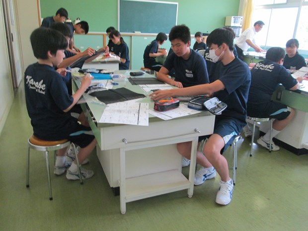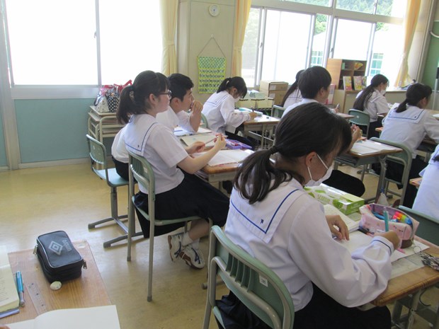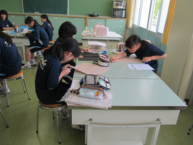 授業の様子 2017年6月9日 16時40分 2年生 技術 はし袋の製作1年生 保体 バレーボール 3年生 国語 説明文「月の起源を探る」 地球と月は親子か兄弟か、それとも他人か?お弁当 かわいい入れ物です