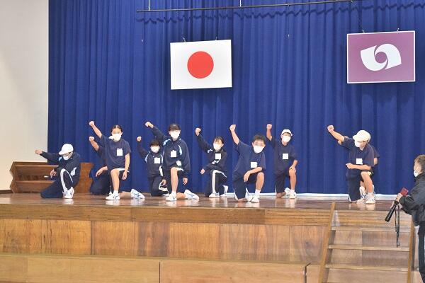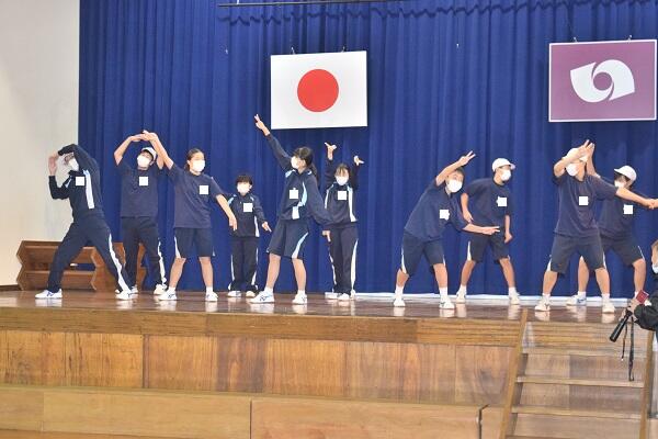 今日の授業の様子2 2022年10月13日 10時41分 1・2年生の体育の授業では、特別非常勤講師の先生の指導によるダンス体験を行いました。生徒は、協力しながら楽しんで参加しました。【体育の授業の様子】