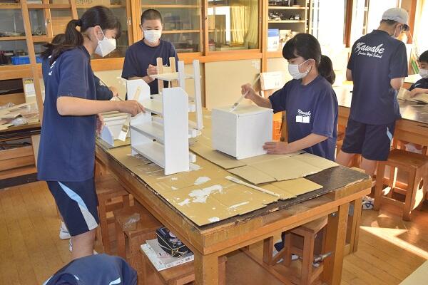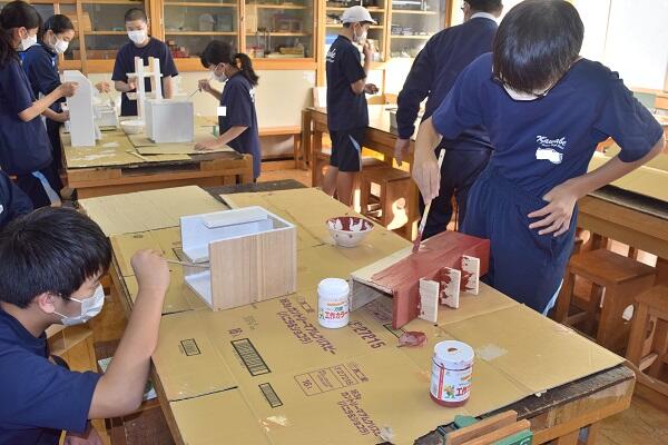 生徒は、自分で決めた色の塗料を使って、塗装作業を行いました。