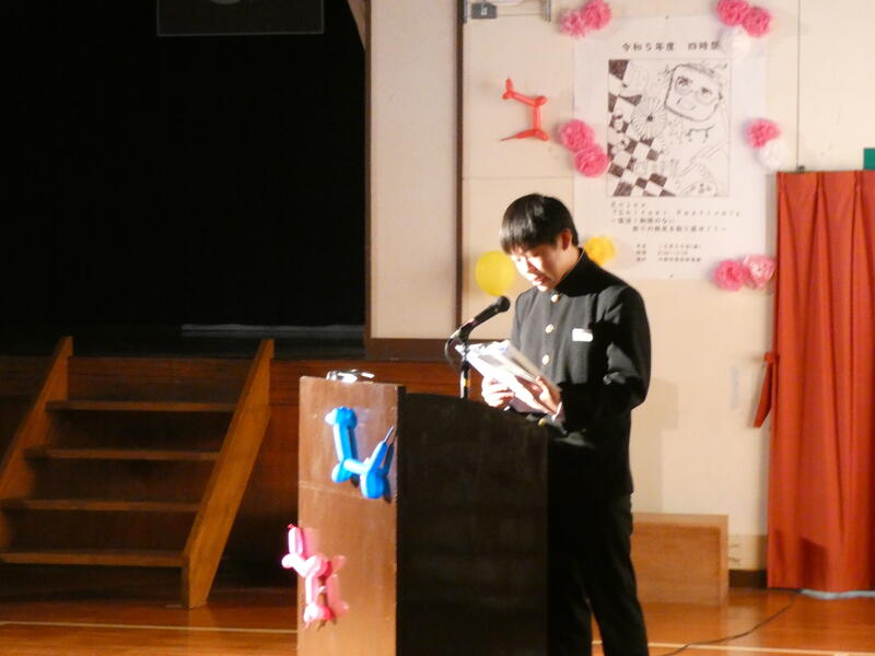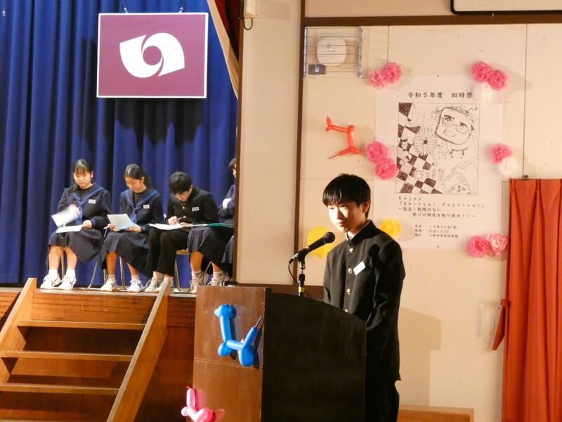 20日(金)令和5年度四時祭が行われました。今年度は、来場者の人数制限もなくなり、多くの保護者・来賓の方々にお越しいただき盛大に開催することができました。生徒も、多くの来場者を前に緊張していましたが、楽しく四時祭に臨み大成功を収めることができました。