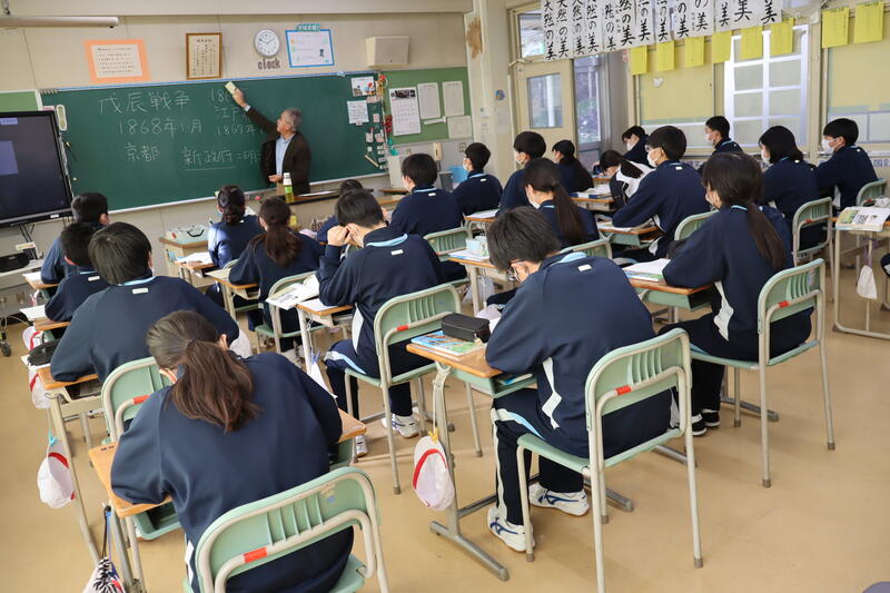 2024年1月29日 15時59分29日(月)1・2年生を対象に「暮らしの伝承郷出前講座」を実施。暮らしの伝承郷館長様を講師に迎え「戊辰戦争」について、当時の記録を読み解きながらお話をいただき、生徒は福島県やいわき市での戦いについて学ぶことができました。また、真剣に説明を聞き熱心にメモを取る生徒も多く見られ実のある講座となりました。