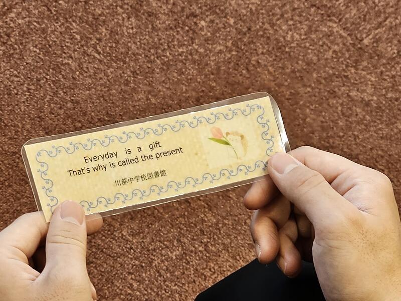 2024年2月28日 14時02分本日、2月28日(水)、3年生にとって最後の読み聞かせがありました。読み聞かせの後に、学校司書の田口美恵子先生から、素敵な「しおり」のプレゼントをいただきました(3枚目の写真参照)。「毎日が贈り物」という素敵なメッセージです。田口先生、本当にありがとうございました。