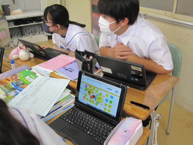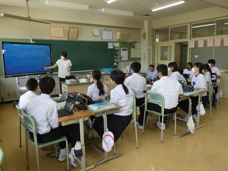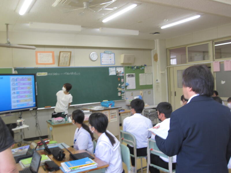 生徒たちは、大勢の先生方に見守られながらの授業で緊張気味でしたが、活発な話し合い活動や考えをまとめて発表するなど積極的に授業に臨む姿がみられ、感心しました。