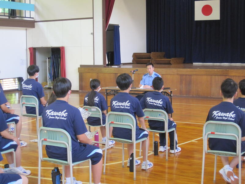 本日4校時、川部駐在所の方に講師をお願いし、防犯教室を実施しました。また、近年問題となることが多いSNSの危険性についても併せてお話しいただきました。