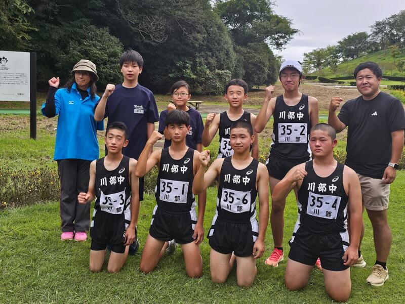 2024年9月5日 17時18分本日、9月5日(木)、21世紀の森公園において、市中学校駅伝競走大会が開催されました。7名の特設駅伝部員たちは、残暑厳しい気候の中、懸命に襷をつなぎました。長距離専門外の選手も少なくない中、全員が、長距離の得手不得手よりも、自分自身の限界への挑戦を第一優先事項に掲げて走る姿は、大変感動的でした。3年生は、本日で完全に部活動引退となります。本当にお疲れ様でした。保護者の皆様のご声援、誠にありがとうございました。以下に、本日の様子を、発走順を基本としてご紹介いたします。