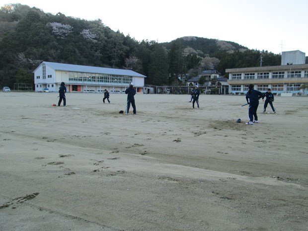 寒い日、暖かい日、風の強い日などありますが声を出して部活動を行っています。