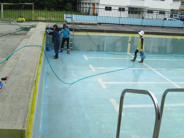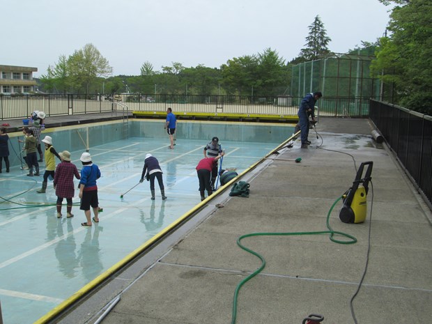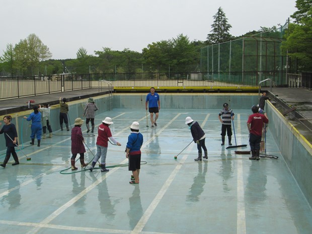 プール清掃 2017年5月10日 09時03分 お忙しい中プールの清掃をしていただきありがとうございました。おかげさまでたいへん美しいプールになりました。特に今年度はシャワー付近の排水関係まで行っていただきました。例年より早めにプールが使用できそうです。