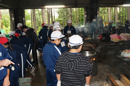 野外炊飯では、カレーを作りました。みんなおいしくつくることができました。