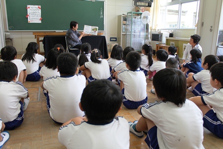 3年生の子どもたちが、楽しい本や考えさせられる内容の本の読み聞かせをしていただきました。
