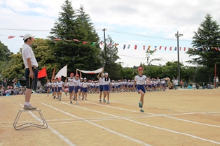 各学年による徒競走、チャンス走、団体種目と、6年生による鼓笛の演技を行いました。