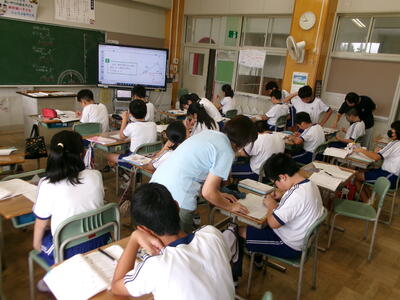4年1組は、問題が解けるとすぐに先生にチェックしてもらいます。