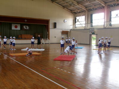 6年3組は体育「マット運動」
