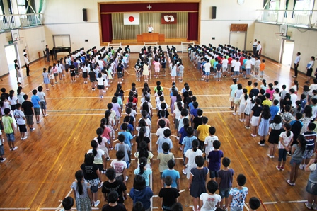 校長先生から、「しっかりあいさつをしましょう。」「目標をもってがんばりましょう。」「命を大切にしましょう。」というお話がありました。