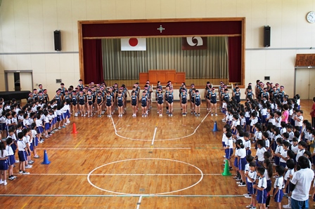 1~5年生の児童は、選手たちのすばらしい動きに感激するとともに、