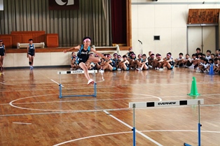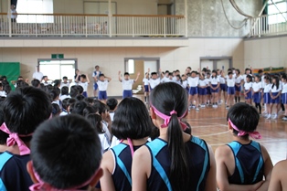 種目ごとに選手を紹介し、代表児童の模範演技をしました。