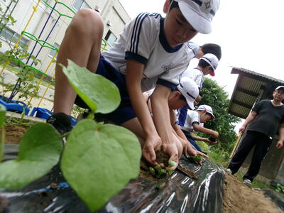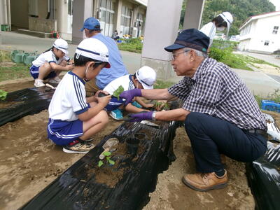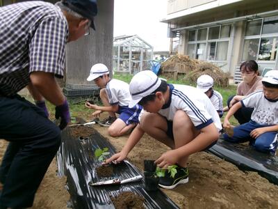 3年生が地域の農家の方からネギの苗植えについて教えていただきました。