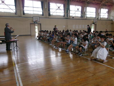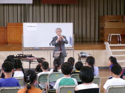 リコーダー奏者をお招きして、3年生がリコーダーのあれこれを学びました。