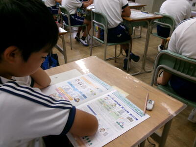 6年生が租税教室を行い、講師の方から税金の種類や使い方について教わりました。