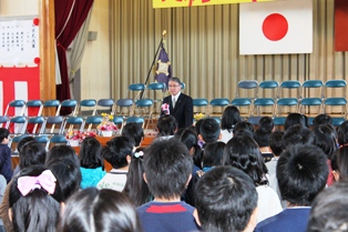 校長先生からは、「あいさつをしっかりしましょう。」「返事をしっかりしましょう。」「くつをそろえましょう。」というお話がありました。