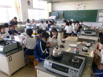 5年3組は家庭。みんなで飲む緑茶の味はどうですか? 普段はあまり飲まないという子が多かったです。