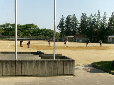 朝の時間に、6年生が校庭整地を行ってくれました。